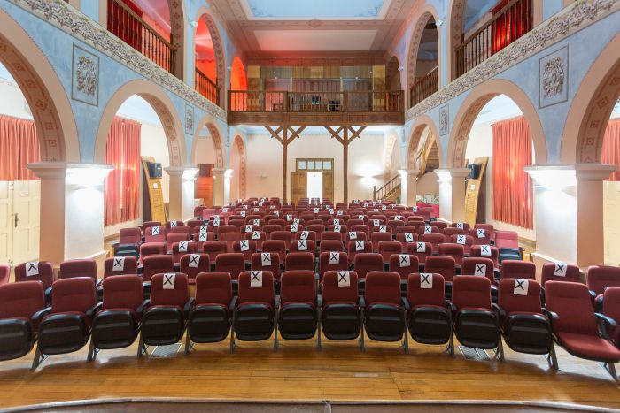 No bem montado e aparelhado salão de teatro eram proporcionados espetáculos teatrais pelos seminaristas. Assim como a Capela, seu interior recebeu pintura mural do artista Pedro Cechet.