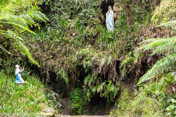 É uma replica da gruta de Massabielle em Lourdes no sul da França, onde Nossa Senhora apareceu 15 vezes à jovem Bernadete em 1858